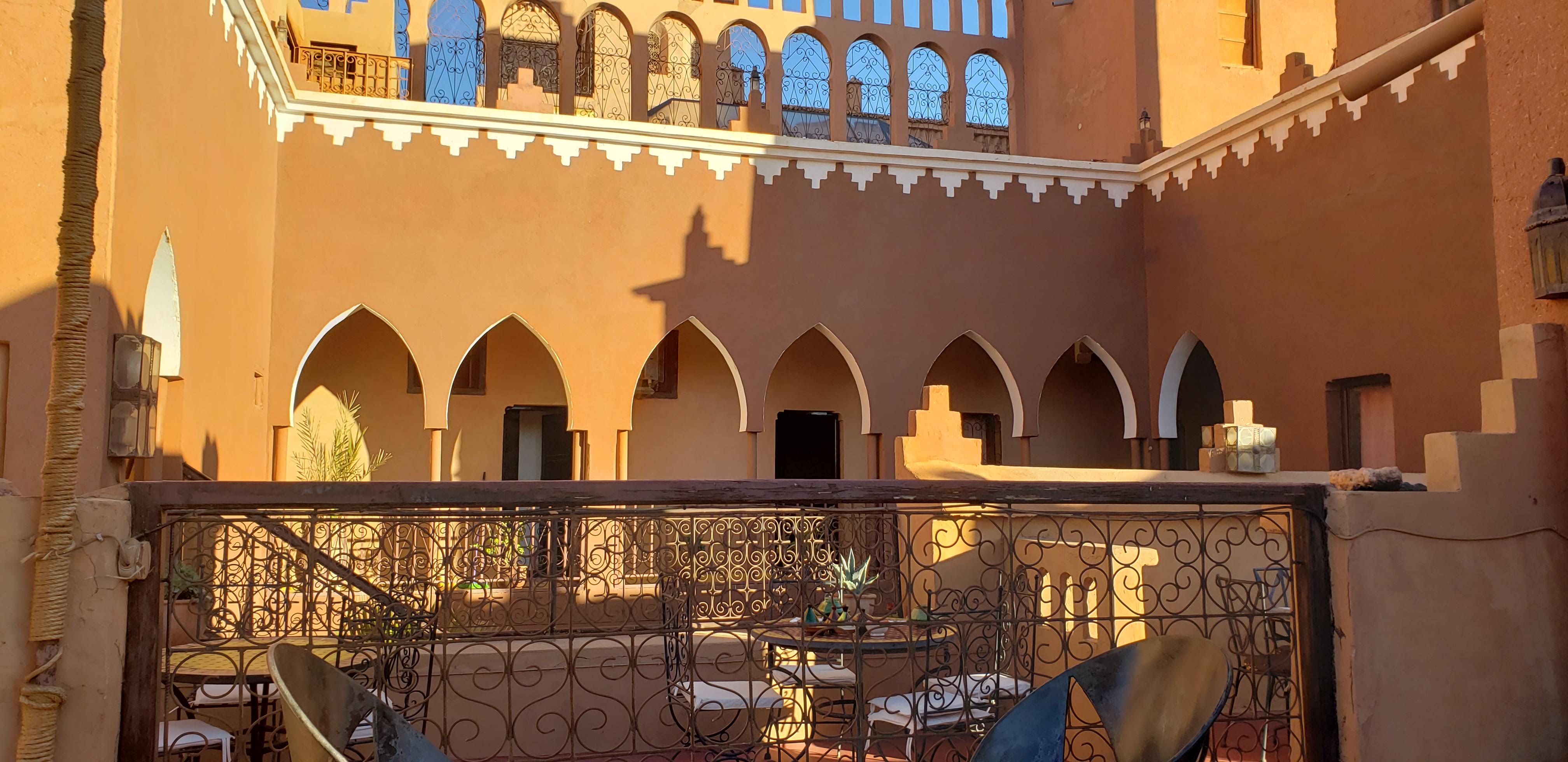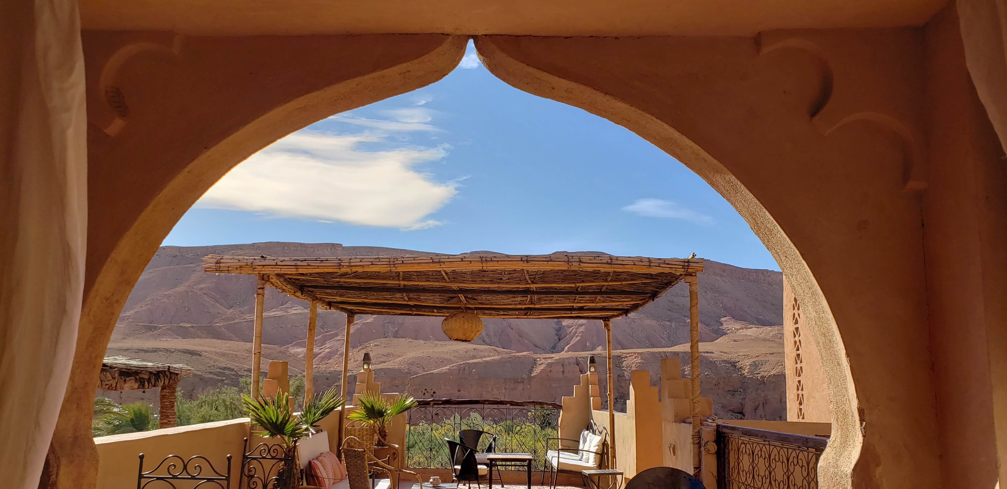 We stayed at one of our FAVORITE riads on this drive. Kasbah Ellouze was a massive castle-like location located not far from the Ait Benhaddou. It was something out of a story book with how unique it was. The place is run by an older French couple that were the absolute sweetest. The staff made us feel extremely welcomed with the infamous Moroccan Mint Tea. We learned there was only a handful of couples staying so it felt like we had the place to ourselves. This place had great surrounding views and really cool relaxing areas. Rainier and I did what we do best, plan our next steps on our journey to Egypt.