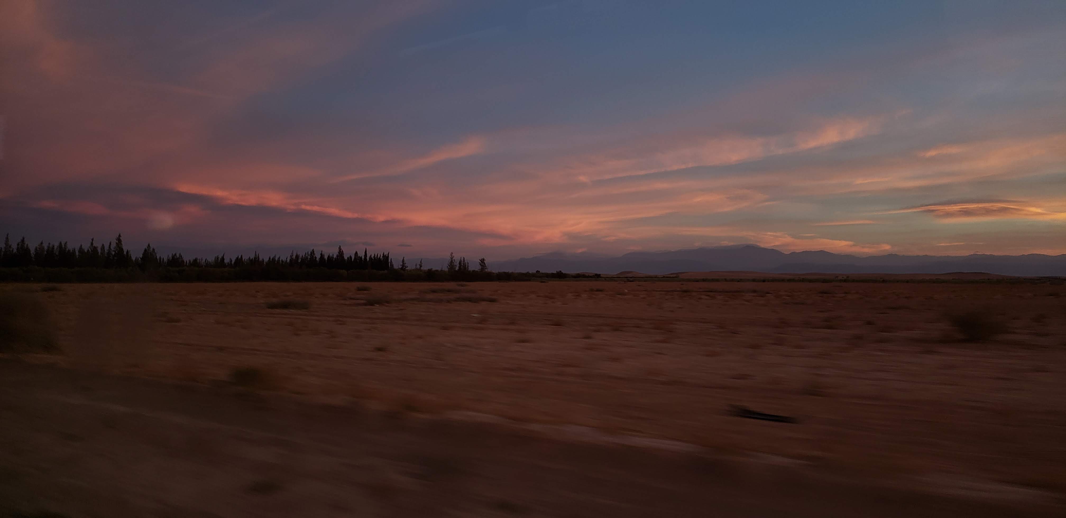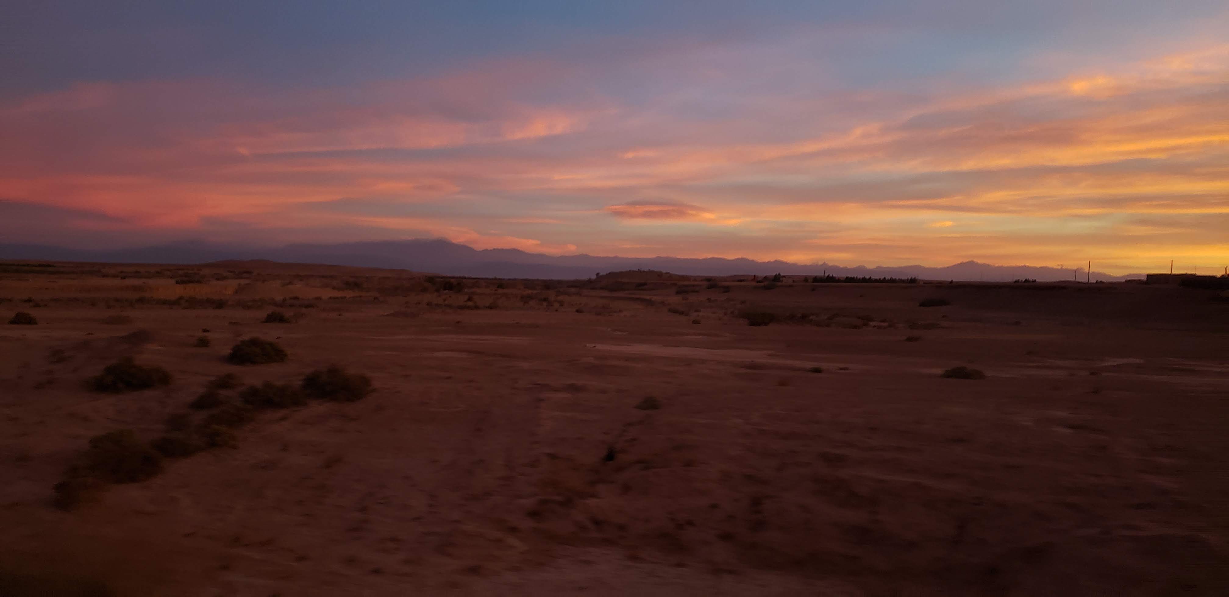 After all our explorations, it was time to head back to the van that would be taking us back to Marrakesh. We both plugged in headphones and relaxed during the 3.5 hour ride back home. The evening sky lit up with beautiful colors. Morocco was proving to be on our list for amazing sunsets.