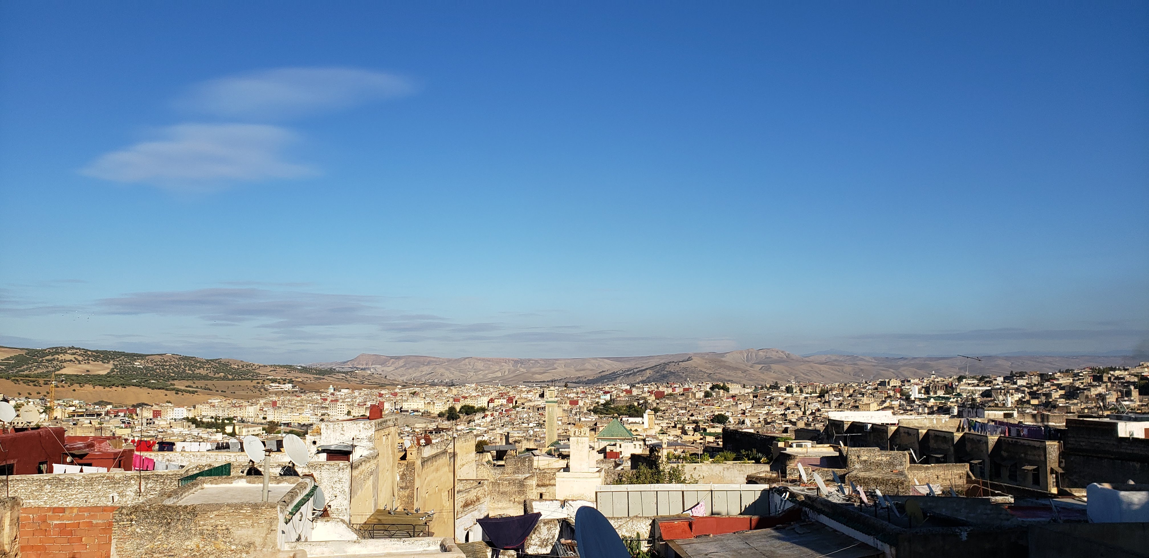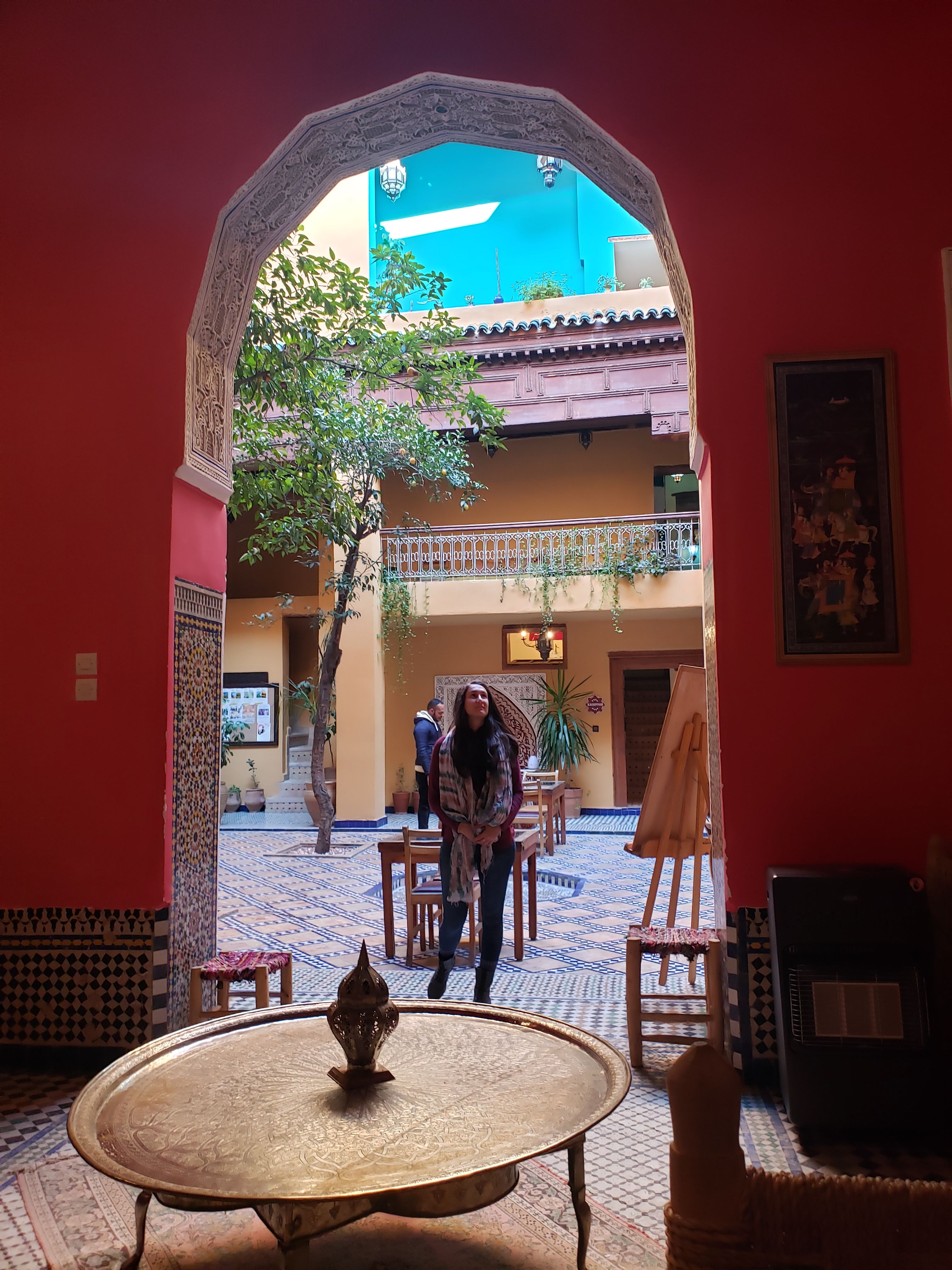 Before Ali left us in Fes, he made sure that we would make it to our Hostel with ease. He called a guy that took our luggage in a wheel-barrel type carrier and we followed this guy through the winding roads to our Hostel. The roads in the Medina were much tinier than Marrakesh. We were told it was a “car-free” zone. The hostel was called Medina Social Club and this was our first hostel since being in Spain. It was tucked away in one of the the alleyways. The staff was super very friendly upon checking us in. The hostel was set-up like our Riad in Marrakesh. Our room was filled with people from all parts of the world and made for some interesting conversations. The hostel had a restaurant on their ground floor in their lobby, with tables all around to relax. We also enjoyed the pillow-lushed rooftop lounge. The entire hostel had a welcoming, colorful vibe.