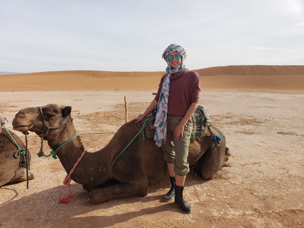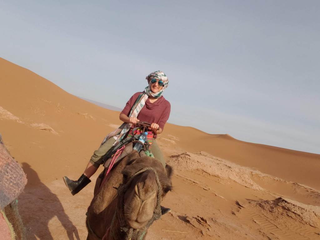 The following day we had a lovely breakfast and our first activity was a camel ride. They tie the camels together and they just walk along at a slow pace. It was a fun experience as a bucket list item but was a bit slower and less exciting for my expectations. They took us around the sand dunes for about an hour in half before heading back to go see how the nomads live in the desert.