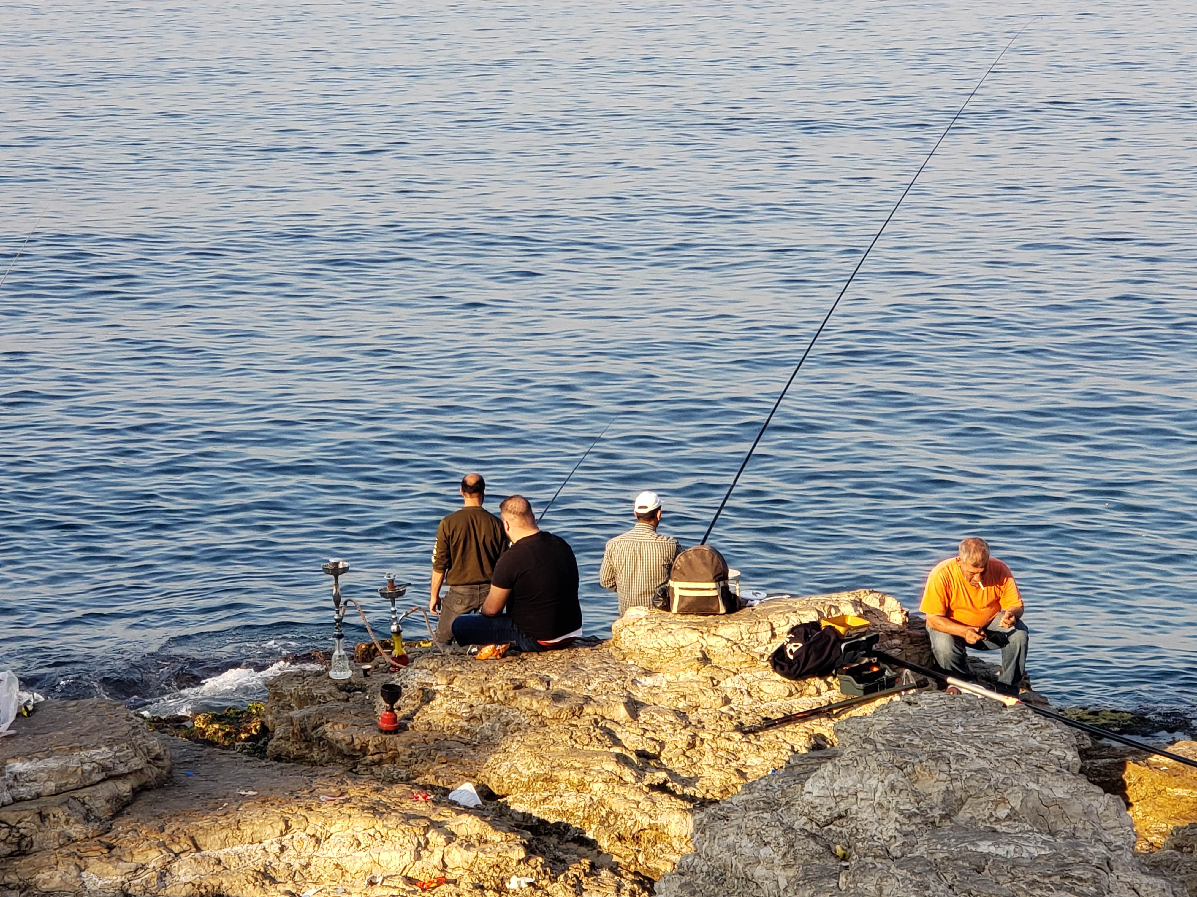 Beirut is located on the coast and is quite mountainous. There is a long boardwalk that wraps along a decent part of the city, which makes it a great spot to walk along and relax. We passed by locals selling fish, saw people fishing off the boardwalk everywhere and some rocks down in the water. We even passed by the some locals playing sports in bathing suits while others were lounging in the sun. Funny enough, it was mostly men. We probably noticed a few women and they were covered in clothes. Near the coast is The American University of Beirut, not only was it a beautiful campus to admire but there really is so much crazy history there. What stood out to us the most when exploring is the distinctive architecture and art everywhere.