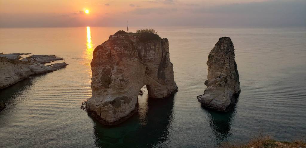 We continued on the boardwalk for what seemed like forever until we got to a beautiful sunset view. We were recommended to see it from the Raouche Rocks. It is a popular spot to watch the sunsets. I think we did more walking in Beirut than any other city. We hit over 25,000 steps in one day! It was such a cool place to just get lost.