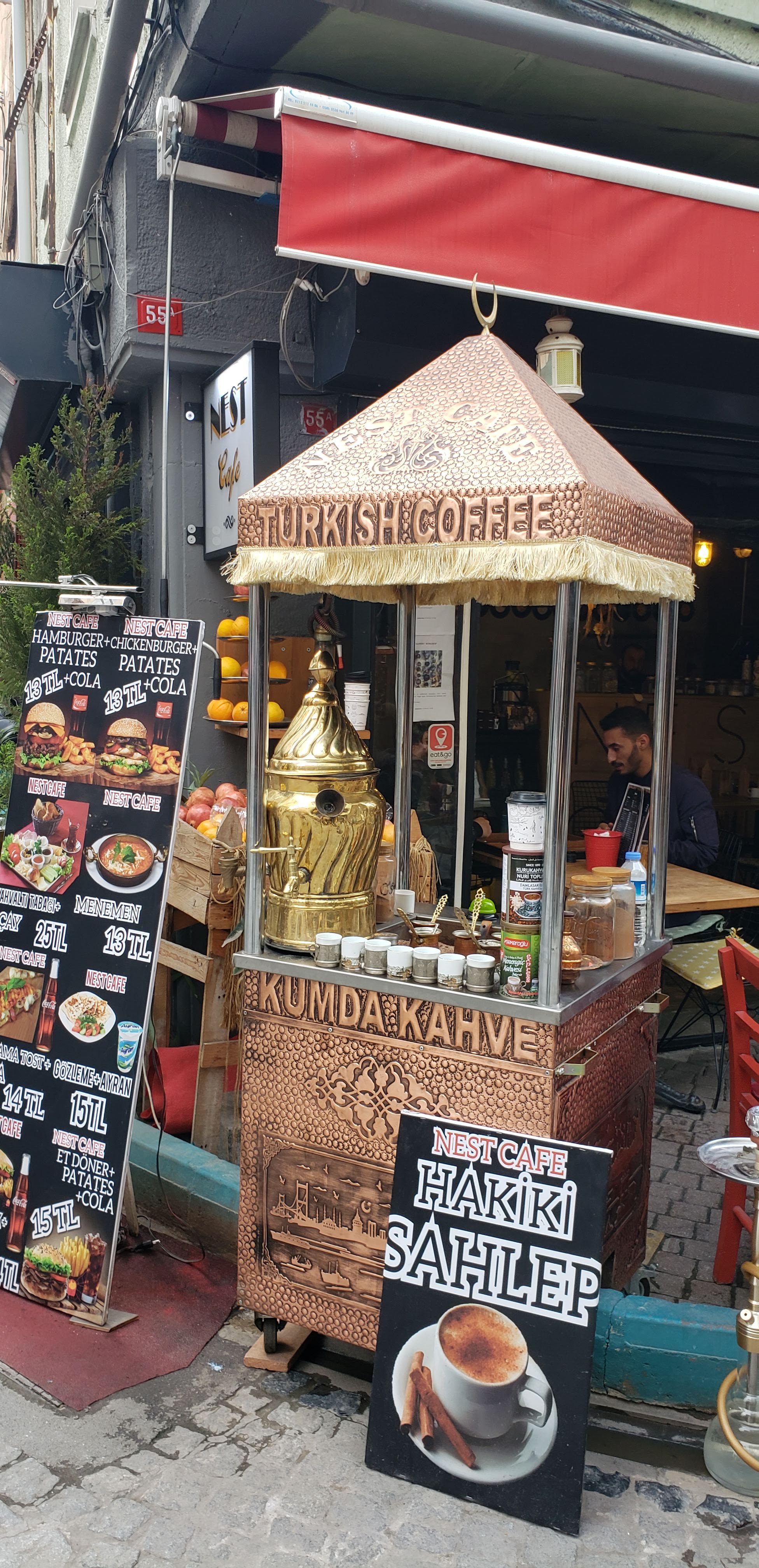Surprisingly, this city is extremely hilly, we found ourselves out of breath quite a few times going all around. We ended up taking a bus from the Airport into the city. It was extremely affordable (3 Euros) and simple. It’s quite the trek to get into the city from the airport, so this is the best way to approach it. From there we walked a decent distance to the hostel we stayed in. We stayed in the Karakoy area. I highly recommend the area as it is a very central point if you want to walk to Takism square or across the bridge. Once we checked in to our nice hostel, Cheers Midtown, we went to a coffee shop down the street. Gamsız Öküz Cafe was a great place to relax as it was down a smaller street. We even had a couple of cats come hang out with us to take a nap, which of course made Rainier beyond excited. I think it was at this point, we knew we would really like this city. We endued up walking by, what I thought was a shop and was actually a restaurant called Varuna Gezgin Café. It looked like it was a library that they decided to turn into a restaurant!