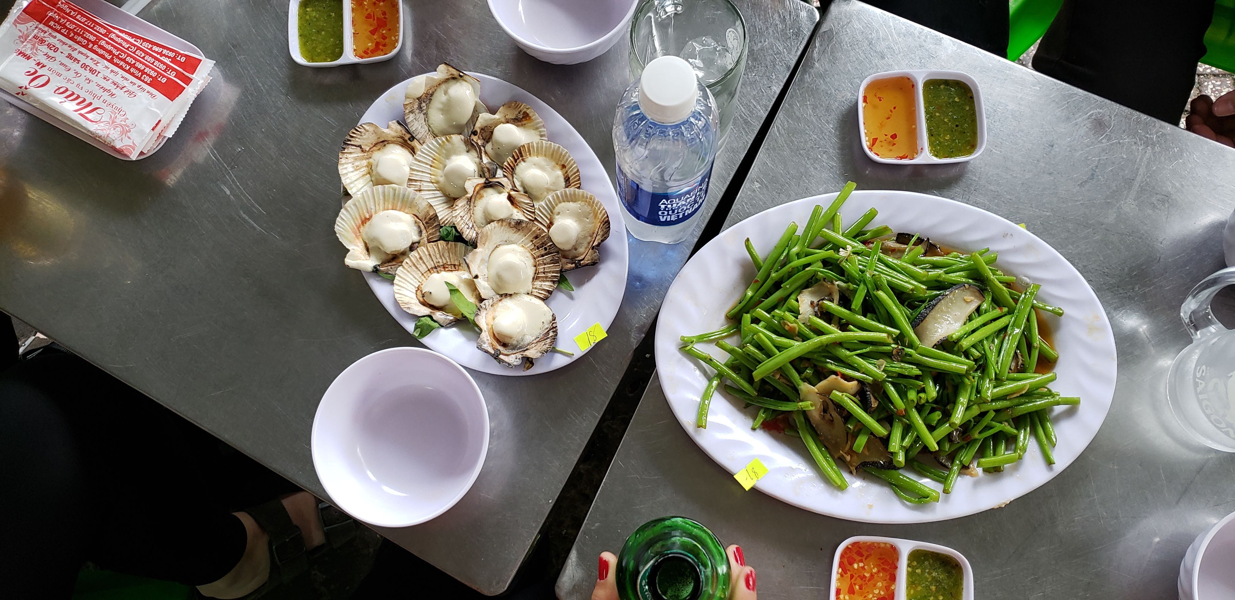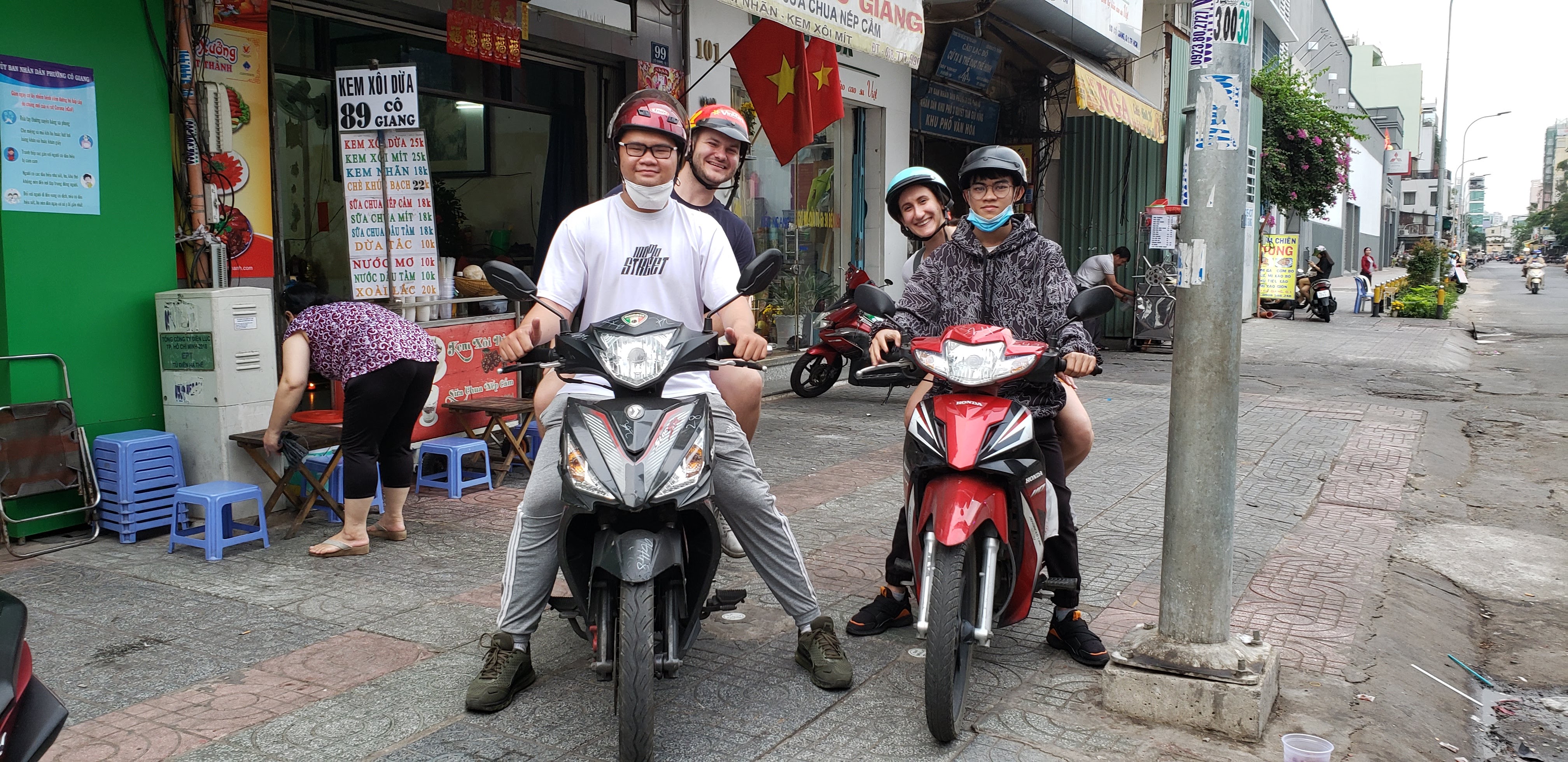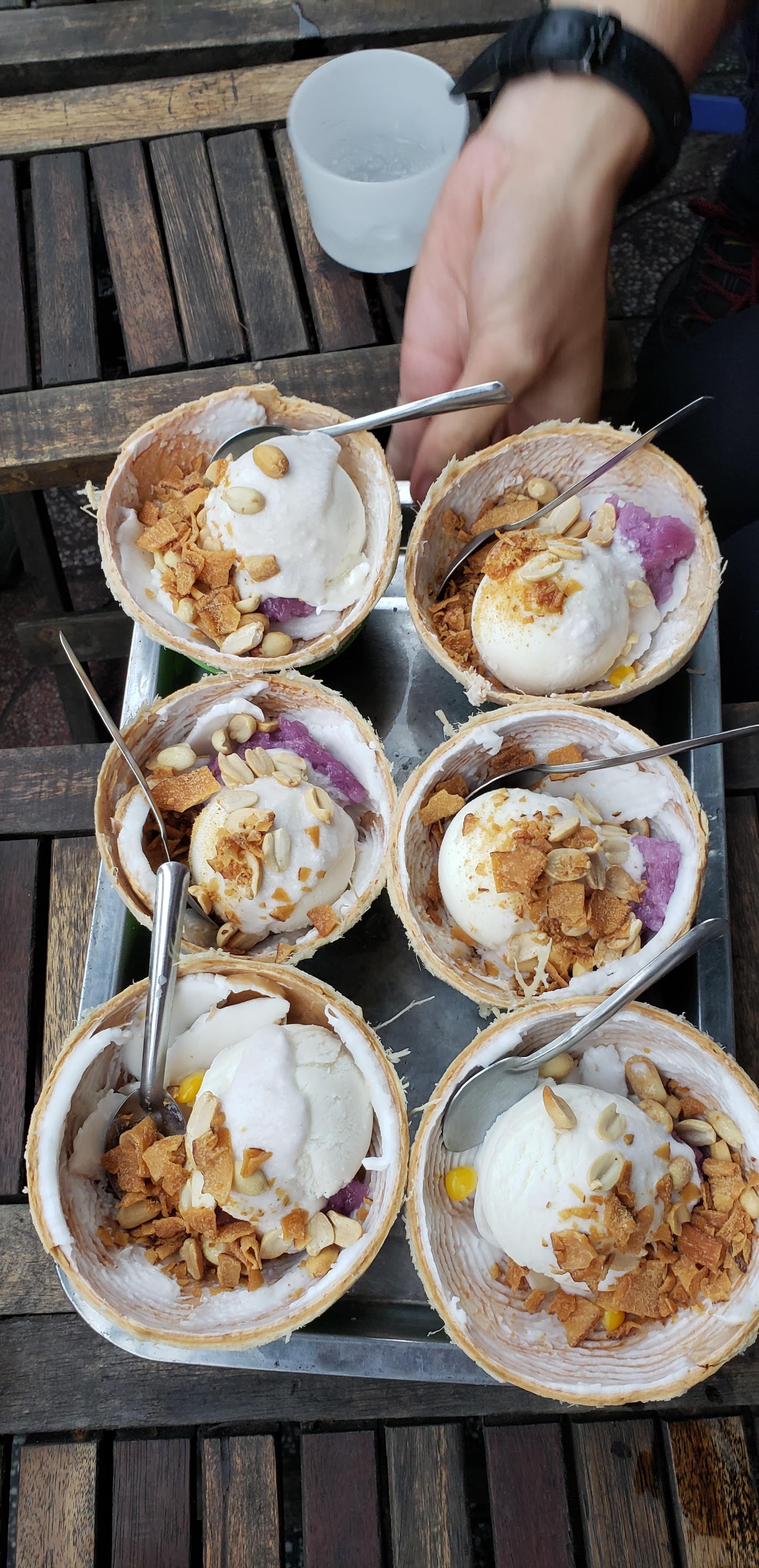 So we ended up doing a trip advisor type exploration. It was an awesome experience that I really really recommend. It’s actually listed in our top experiences. We rode on motor bikes with different people that took us around to 5 or 6 local spots for different food and experiences. The people we went with were so nice and helpful. It really was a great experience to show you different areas of the city and enjoy cuisines that you may never have tried before. Unfortunately, I’m not able to see exactly who it was with so my apologies (message me if you recognize it!). Some of the places we stopped at are listed below. Here are a couple of the places that we stopped at along our trip! We got amazing coconut type ice cream that you can see in the picture below check out here. Also these type of egg and shrimp omelets that we had were delicious below and link here